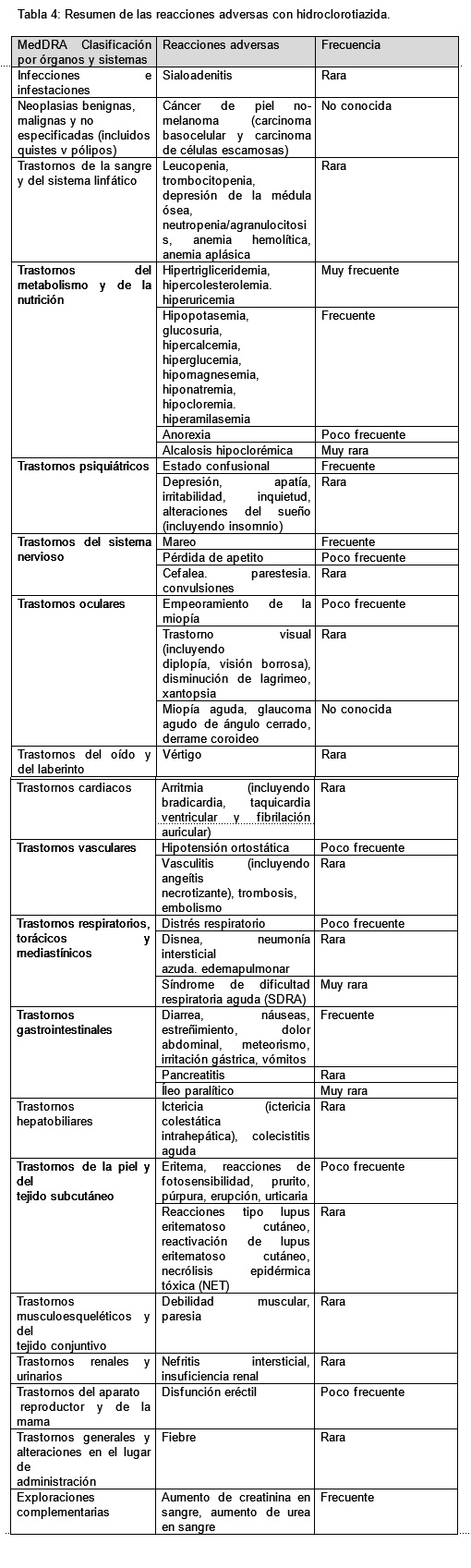 Cáncer de piel no-melanoma: con base en los datos disponibles de estudios epidemiológicos, se ha observado una asociación dependiente de la dosis acumulada entre HCTZ y el CPNM.